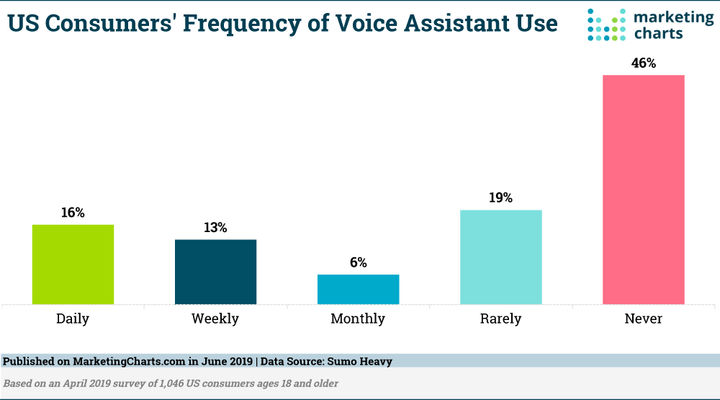 语音助手使用率。图片来自:MarketingCharts